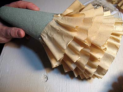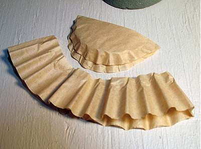 Χρησιμοποιούμε 9-10 φίλτρα καφέ. Κόβουμε το φίλτρο πιο πάνω από τη μέση και προσπαθούμε να δημιουργήσουμε όσες περισσότερες πιέτες μπορούμε. Βλέπε σχέδιο. |