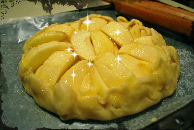 Είναι μια ελεύθερη μορφή τάρτας που σημαίνει ότι δεν χρησιμοποιούμε ταρτιέρα. Διπλώνουμε τη ζύμη πάνω από τα μήλα, έτσι ώστε να δημιουργηθεί μια φωλιά που θα συγκρατήσει τα πάντα. Σερβίρετε ζεστή ή σε θερμοκρασία δωματίου, με ή χωρίς πειρασμούς …κρέμα σαντιγί ή παγωτό βανίλια .