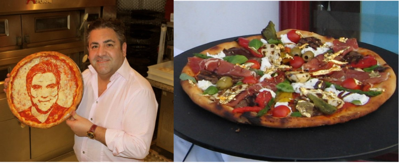 Ετσι αποφάσισε να δημιουργήσει το Pizza Royale 007, μια πίτα 12-ιντσών, γεμισμένη με αστακούς μαριναρισμένους σε κονιάκ, χαβιάρι βουτηγμένο σε σαμπάνια, σάλτσα ντομάτας, καπνιστό σολομό Σκωτίας, προσούτο, μενταγιόν ελαφιού, και vintage βαλσάμικο ξύδι. Και όλα αυτά συμπληρώνονται με ψήγματα χρυσού 24 καρατίων.